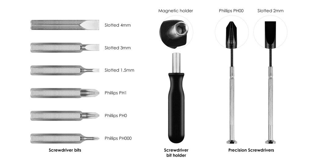 - 2 Precision Screwdriver: Slotted 2mm and Phillips PH00